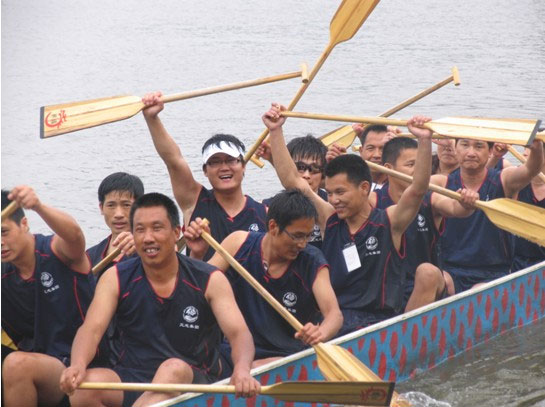 在穿著統(tǒng)一的公司藍色T恤,陣容龐大的艾志工業(yè)技術(shù)集團有限公司拉拉隊的吶喊聲中,“志在千里”龍舟隊以小組第一的成績殺入了半決賽。并最終以第四名的成績在決賽中取得了優(yōu)異的成績。所有的感動、激情、欣慰都只能用陣陣歡呼聲來表達!