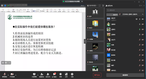 本次視頻沙龍的主題是“機械密封的討論”,參與人員有106人。視頻沙龍發(fā)布了艾志工業(yè)革新性的渣漿泵密封技術(shù)——318W旋風(fēng)機封,這項技術(shù)獲得國際專利和國內(nèi)專利,對解決渣漿介質(zhì)的密封有了革命性的提升。同時就客戶現(xiàn)場機械密封的常見問題和如何提高服務(wù)質(zhì)量,分享了解決方法與經(jīng)驗,大家積極參與,各抒己見,收獲頗豐。