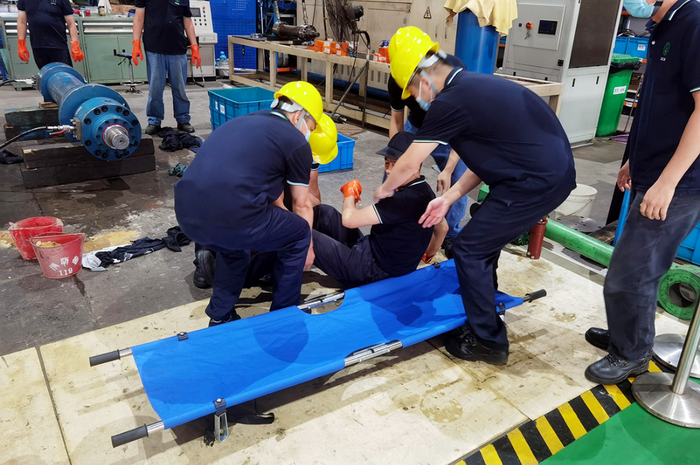應(yīng)急救援預(yù)案的應(yīng)急演練是為了檢驗、評價和保持公司生產(chǎn)安全事故應(yīng)急救援預(yù)案、環(huán)境突發(fā)事件應(yīng)急救援預(yù)案的應(yīng)急能力及有效性。1、可在事故真正發(fā)生前暴露預(yù)案和程序的缺陷;2、發(fā)現(xiàn)應(yīng)急資源的不足(人力和設(shè)備等);3、改善各應(yīng)急部門、機構(gòu)、人員之間的溝通與協(xié)調(diào);4、增強職工應(yīng)對突發(fā)事故救援的信心和救援意識;5、提高應(yīng)急救援人員的熟練程度和技術(shù)水平,進一步明確各自的崗位與職責(zé)。2022年8月31日15時10分,在江寧廠區(qū)液壓缸生產(chǎn)中心裝配組進行。現(xiàn)場處置方案演練:針對公司突發(fā)環(huán)境事件應(yīng)急救援預(yù)案的部分應(yīng)急響應(yīng)功能,檢驗、評價公司應(yīng)急組織的應(yīng)急能力。1、液壓油泄漏事件的應(yīng)急響應(yīng)和救援。2、發(fā)生環(huán)境突發(fā)事件時,對現(xiàn)場環(huán)境的應(yīng)急處理。3、如發(fā)生人員傷亡,急性中毒等額外情況,對傷員的初步處理。