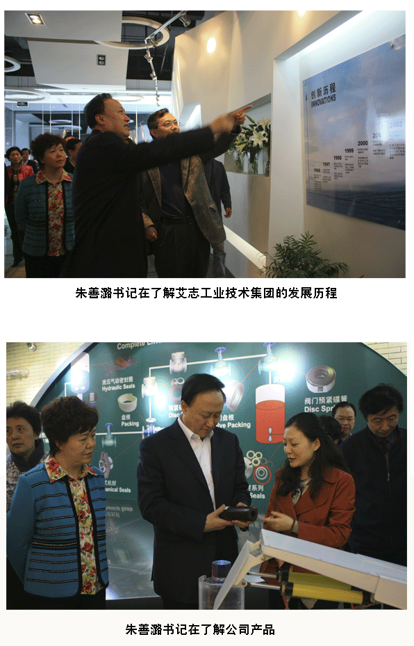 2010年4月,省委常委、市委書記朱善璐及市領(lǐng)導劉以安、王詠紅等來到艾志工業(yè)技術(shù)集團有限公司位于漢中門大街的科研及行政總部考察,詳細了解了公司的發(fā)展近況以及工業(yè)密封作為一種環(huán)保技術(shù)的發(fā)展前景,朱善璐書記高督肯定艾志工業(yè)技術(shù)集團有限公司作為一家由海歸人員創(chuàng)辦的產(chǎn)學研結(jié)合的創(chuàng)新型高科技企業(yè)在節(jié)能減排環(huán)保事業(yè)上去的的成績與做出的貢獻,他強調(diào)政府將加快轉(zhuǎn)變發(fā)展方式,充分支持艾志工業(yè)技術(shù)集團有限公司這種創(chuàng)新性高科技企業(yè)的發(fā)展,深入調(diào)研,找出制約創(chuàng)新成果產(chǎn)業(yè)化的矛盾和問題,拿出南京市解決問題的整體已經(jīng)和真招實招,進一步做好政府服務(wù),切實為企業(yè)解決在發(fā)展過程中遇到的困難,同事在更高起點、更高水平上集中力量加快推進創(chuàng)新驅(qū)動。